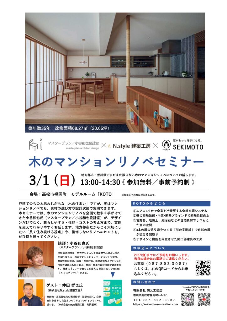 【ご予約受付中】3月1日小谷和也氏「木のマンションリノベセミナー」 開催